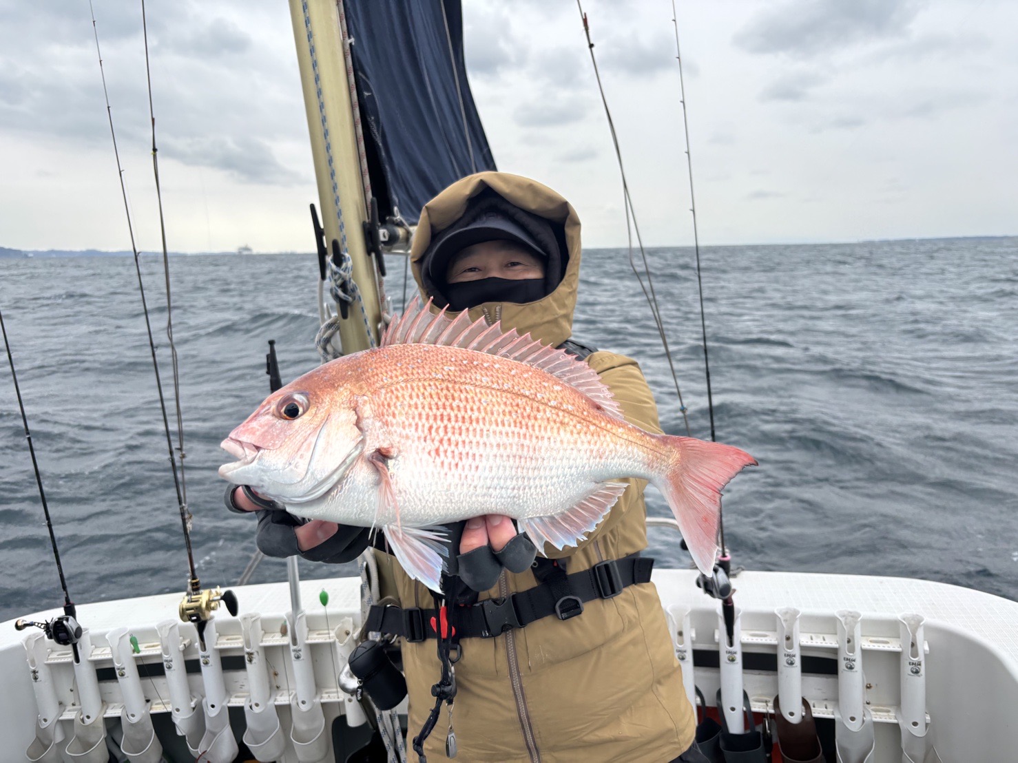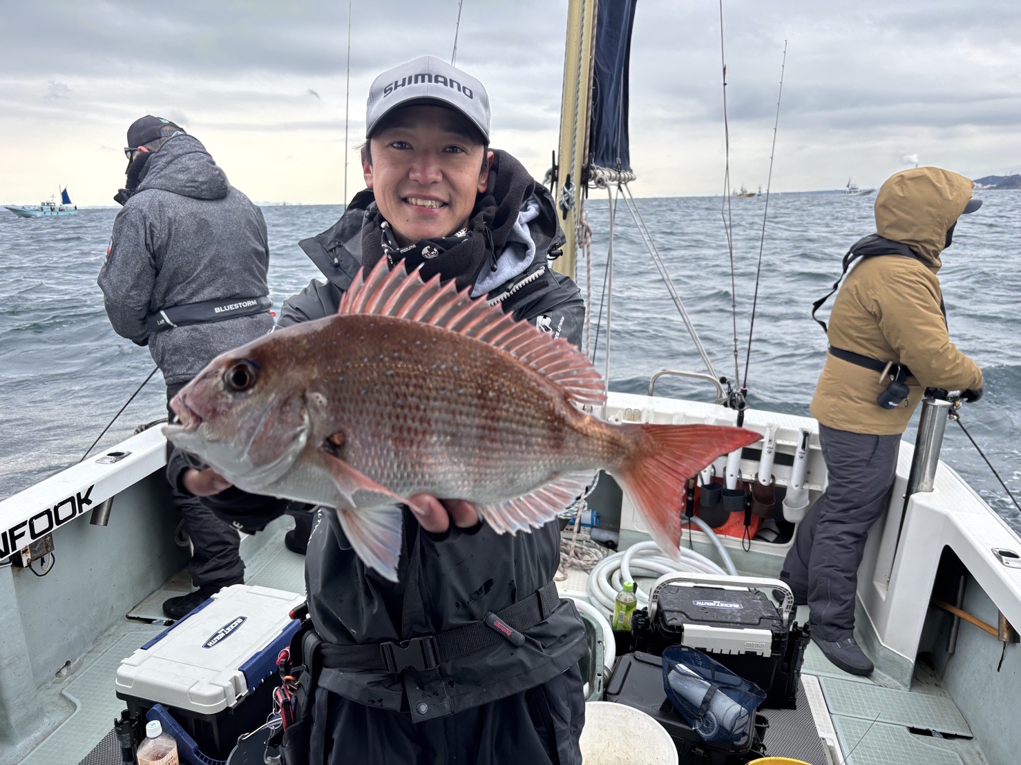 その後潮流れてきて、昨日のような派手な連発はなかったですが、ポツポツと真鯛きてくれて、4kgアップも登場👍👍