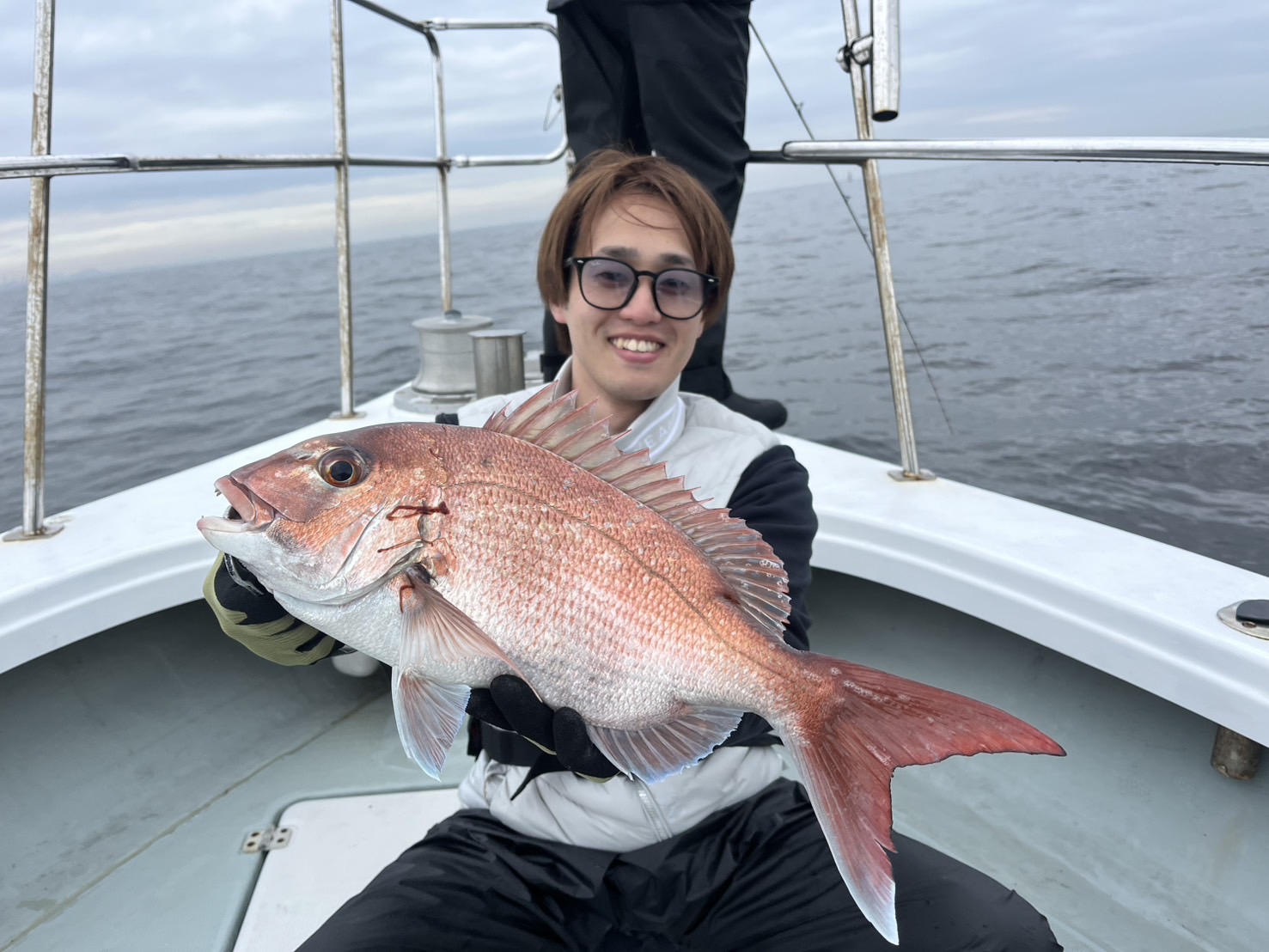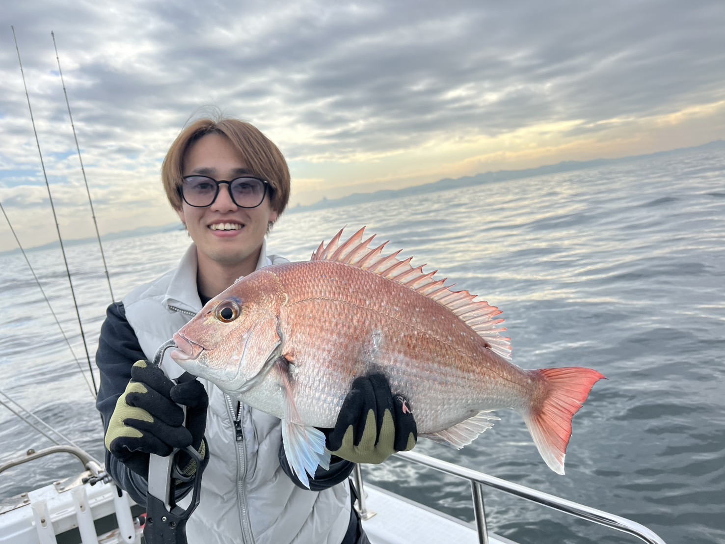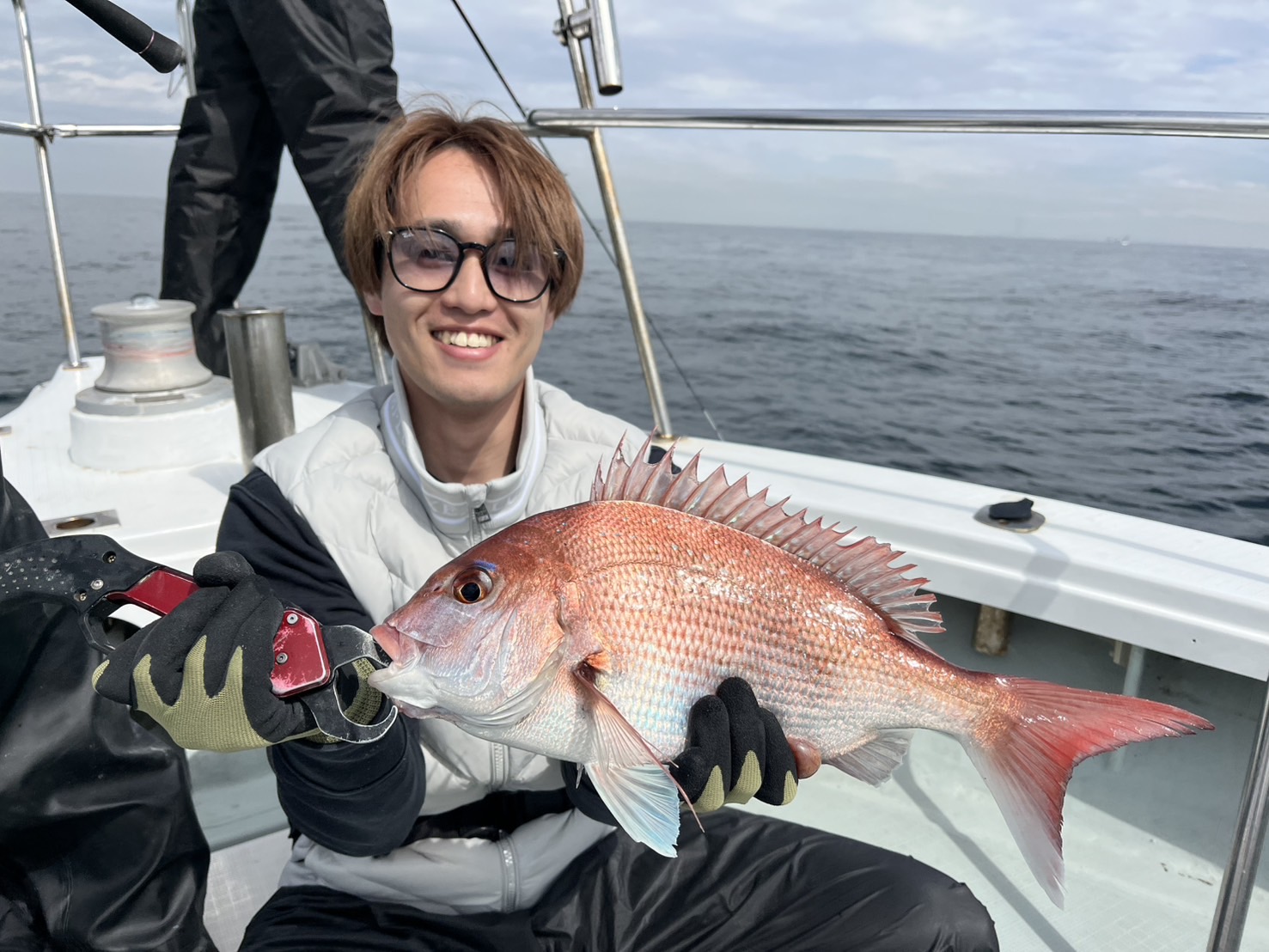 地合いにコンポタ食べたいと言う→お説教→真鯛釣る